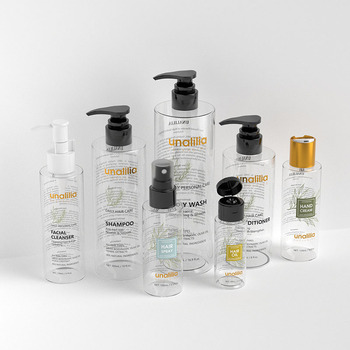 ขวดทรงกระบอกพลาสติก PET โปร่งใสสำหรับแชมพูโลชั่นบำรุงผิวบรรจุภัณฑ์เครื่องสำอางแบบสั่งทำ